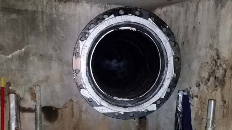 Eight 24-inch carbon steel penstock drain lines were identified with sections that had internal deterioration due to corrosion. This was in large part due to the lack of an internal coating. Because the drain lines are surrounded by concrete, external repair or replacement was not possible. As an alternative, STRUCTURAL TECHNOLOGIES recommended internal rehabilitation using the V-Wrap™ Carbon Fiber System to the corroded segments, each approximately 16 linear feet in length. Repairs needed to take place during a Spring or Fall outage, typically lasting 10 days.