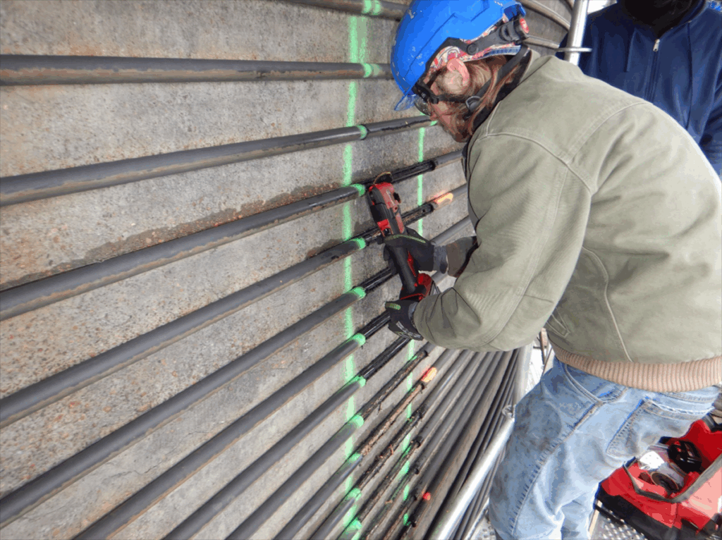 STRUCTURAL TECHNOLOGIES performed a thorough site investigation, supported by engineering analysis, confirming that the silo was structurally deficient and required significant repairs and additional reinforcement. STRUCTURAL TECHNOLOGIES then conducted a feasibility study on the silo’s post-tensioning cables and concrete, resulting in the development of three potential repair options. The owner chose a comprehensive repair solution to restore the silo’s full capacity and extend its service life.