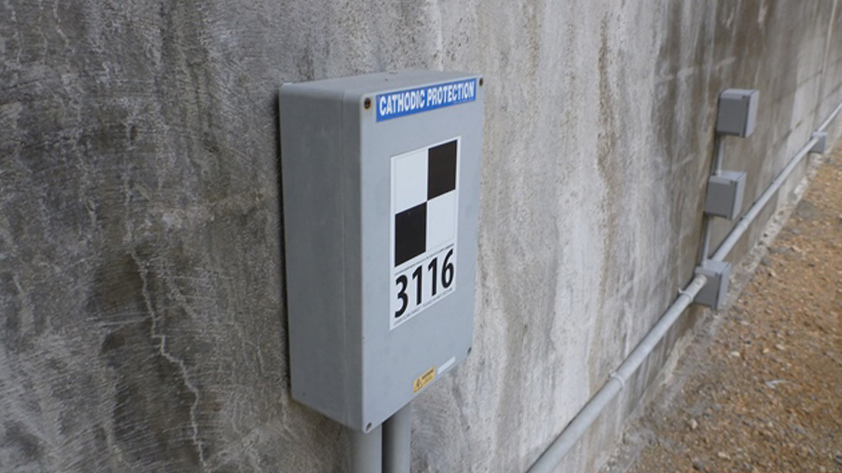 Due to the amount of chlorides and corrosion activity present, a galvanic cathodic protection system was insufficient for providing corrosion protection; instead, an impressed current cathodic protection (ICCP) system designed and manufactured by Structural Technologies was used.