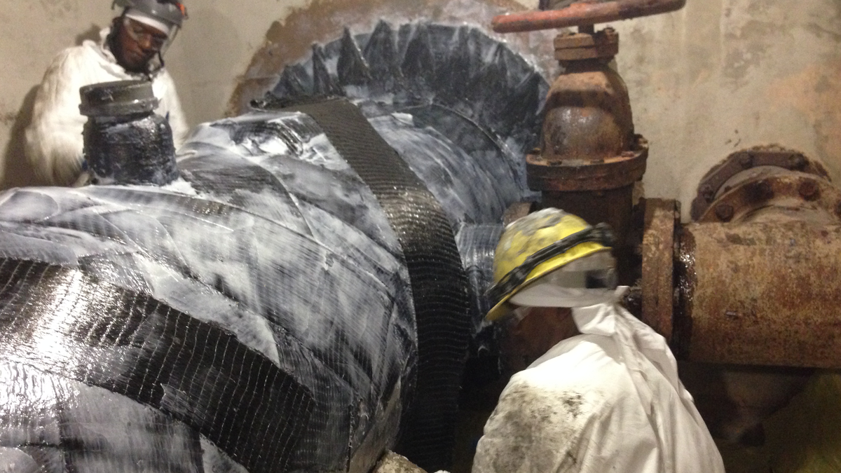 STRUCTURAL, a licensee of STRUCTURAL TECHNOLOGIES’ engineered products and services, developed a solution to repair the pipe while it remained in service, providing a long-term, low-cost solution instead of a costly and disruptive pipe section replacement. STRUCTURAL’s solution was to strengthen the pipe using STRUCTURAL TECHNOLOGIES’ V-Wrap™ Carbon Fiber System.