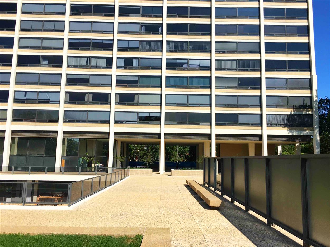 Situated in the Tuscany-Canterbury neighborhood of Baltimore, MD, Highfield House was originally constructed as an apartment building that was converted to a high-rise condominium. The building was designed in 1964 and is the second of two buildings designed by German Architect Ludwig Mies van der Roh. In 2007, the National Park Service listed Highfield House on the National Register of Historic Places, recognized for its significance to the history of modernism in Baltimore City. The property features a 46,000 sf pedestrian plaza with planting beds, concrete benches, aluminum and glass screen walls, and small brick-clad planters surrounded by privacy concrete walls. Below the plaza is a sunken pool.