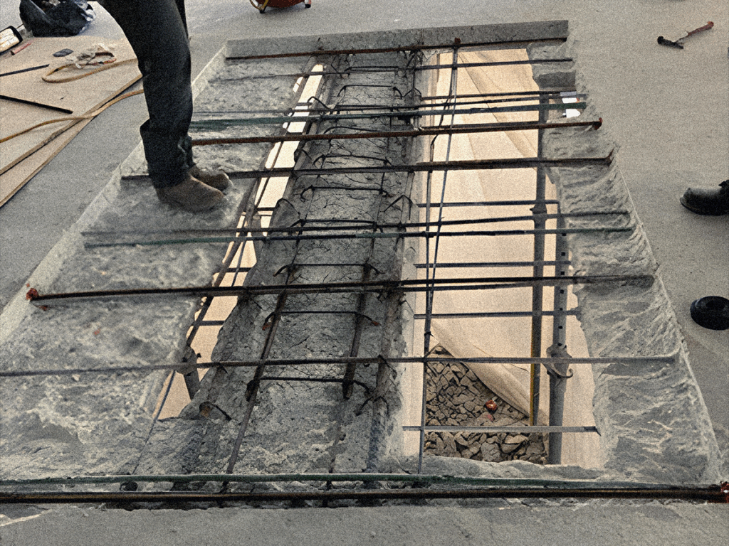 In addition, ten large beams exhibiting structural deficiencies were reinforced using STRUCTURAL TECHNOLOGIES’ CSS V-Wrap™ System, a high-performance carbon fiber-reinforced polymer (CFRP) solution. Each installation was customized to address the specific conditions of the beam, offering strength while minimizing added weight.