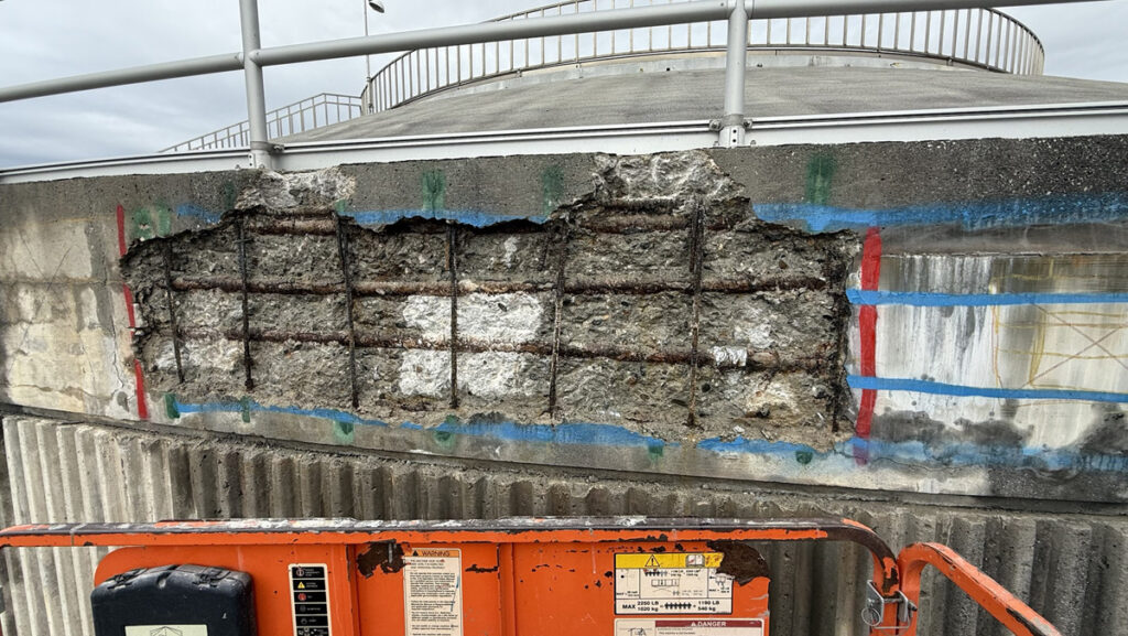 STRUCTURAL, with expertise in post-tensioning and digester tank rehabilitation, led the repair efforts. Damaged concrete was removed, rebar cleaned or replaced, and new concrete restored structural integrity. Ring beams were enlarged and strengthened using post-tensioning systems encased in concrete, enhancing both durability and load-carrying capacity.