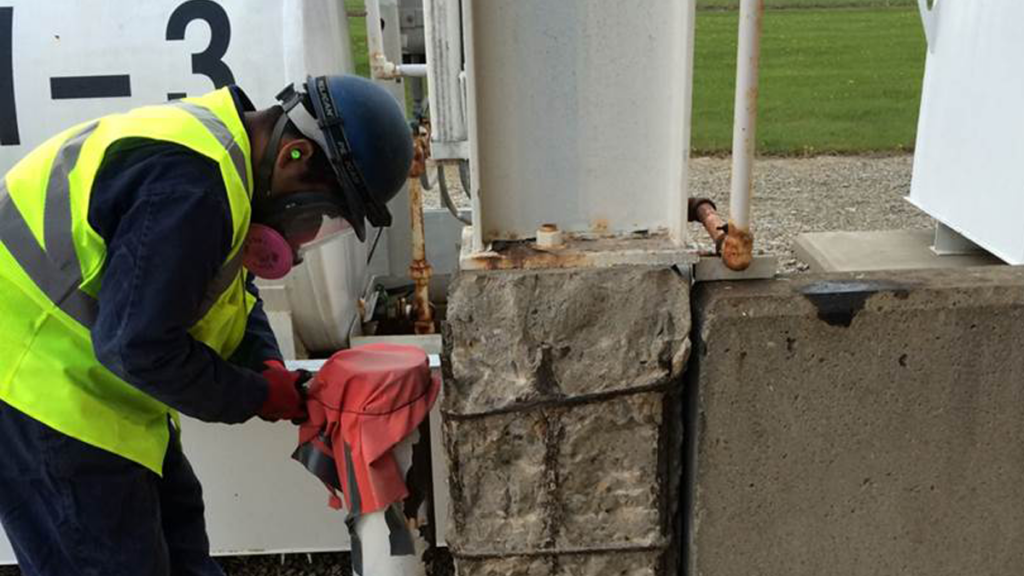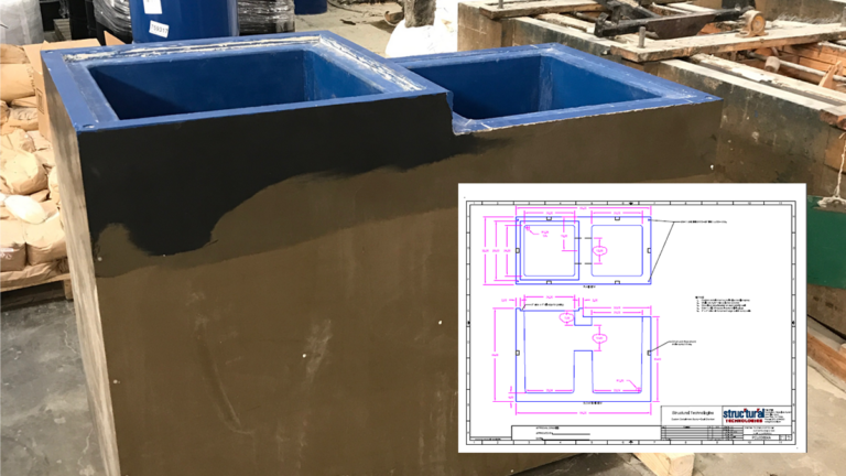 The owners of a Midwest petroleum terminal noticed that the concrete pedestals supporting the canopy of the structure where trucks receive fuel were showing signs of deterioration and possible loss of structural integrity. Rebar was exposed and concrete delamination was observed.