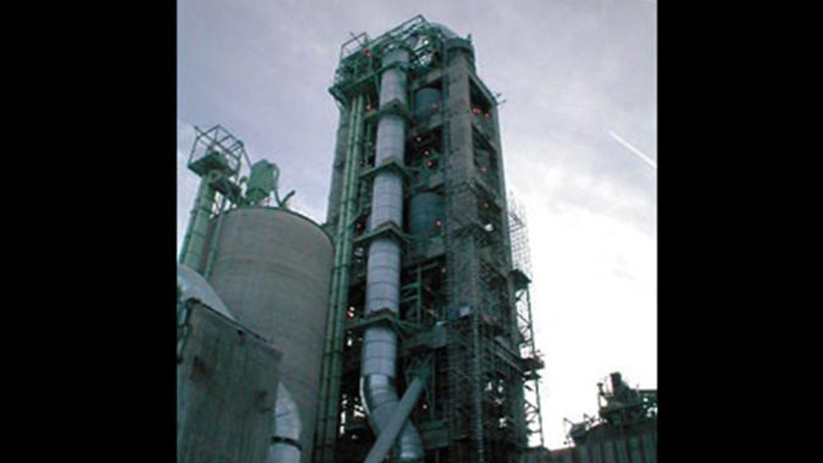 This equipment thermally processes raw material prior to being fed into a dry-process cement kiln… making the tower vital to plant operations. About two weeks after the kiln’s initial start-up, cracks were noticed in the concrete columns at three levels. The cracks coincided with the terminations of flexural reinforcement in the concrete beams.