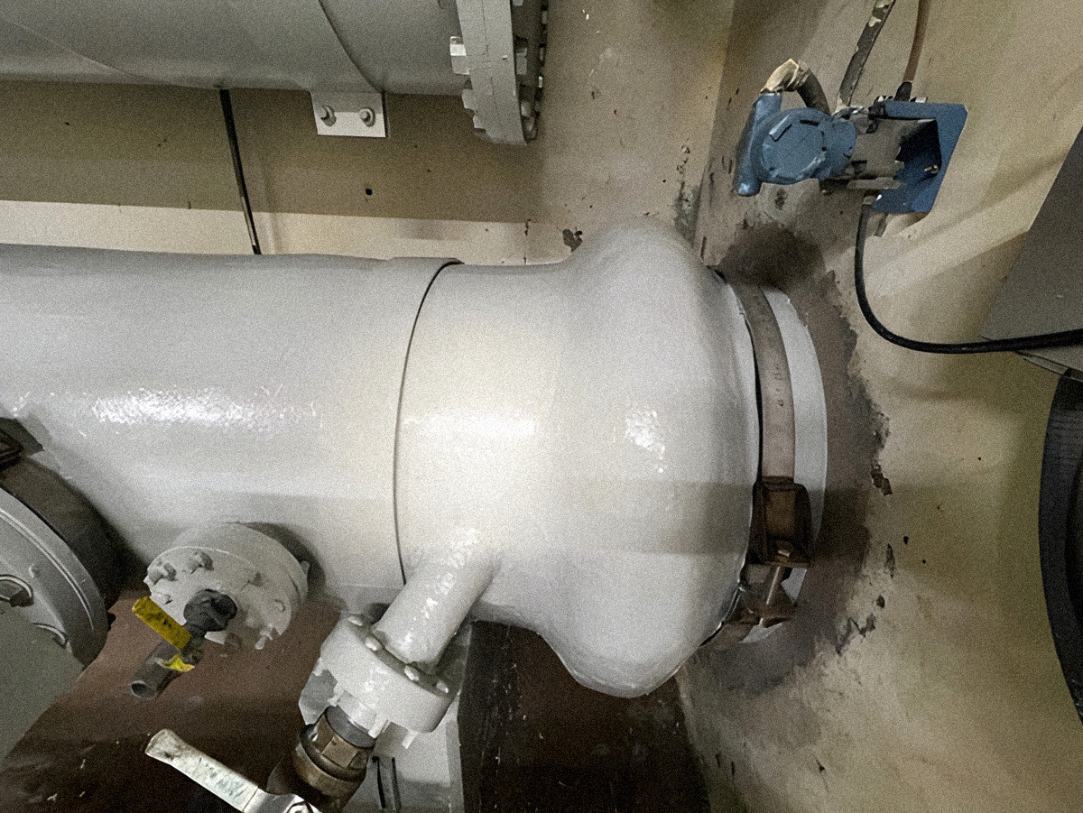 The existing pipe showed visible corrosion and significant wall thickness loss, posing a threat to system integrity and ongoing operations. To maintain essential services and avoid any disruptions, it was critical that repairs be completed without bypassing the system or taking the pipeline out of service.