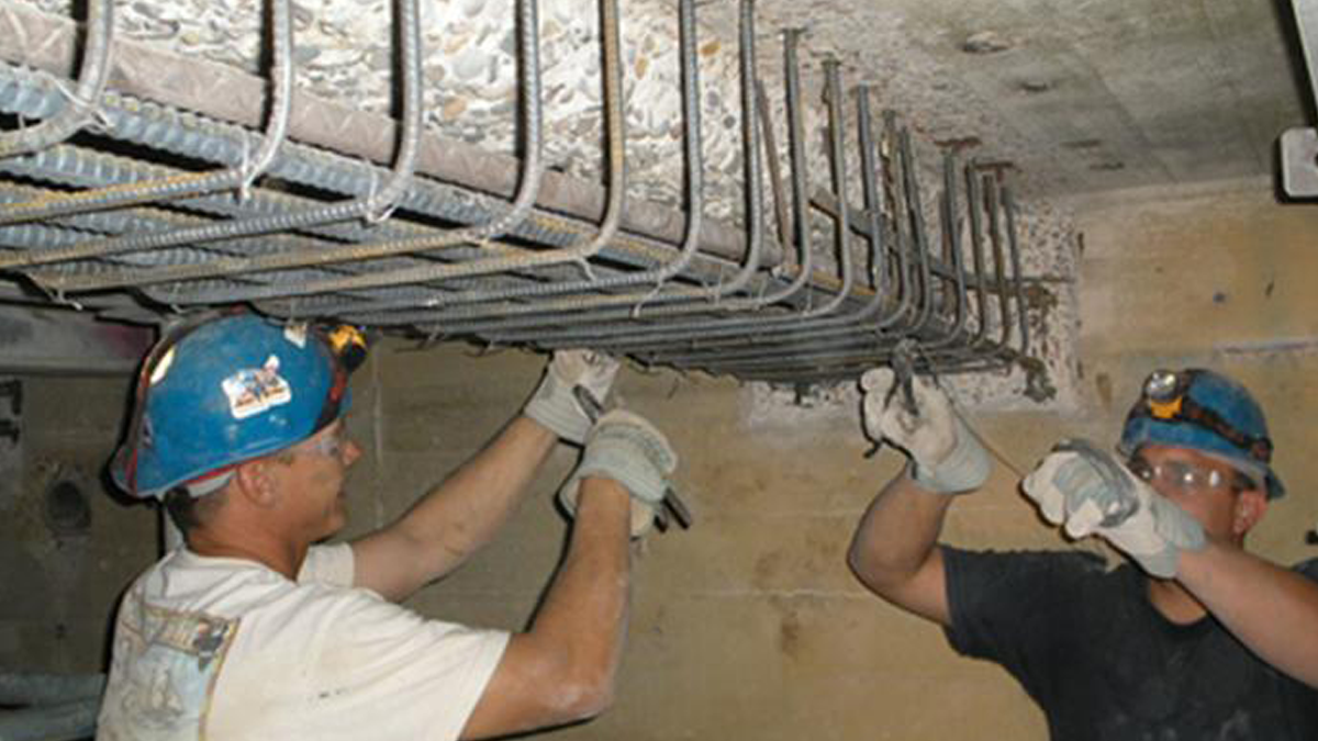 Within the steam tunnel, it was discovered that the original structural beams that were supporting the slab had never been maintained. They had severely deteriorated to the point that they would not be able to carry the new loads. In many areas, the steel rebar was fully exposed or completely deteriorated. Not only would these involved members require repair, they would also have to be strengthened to meet current design codes. The strengthening plan employed an enlargement technique bonding a reinforced concrete jacket to each existing beam.